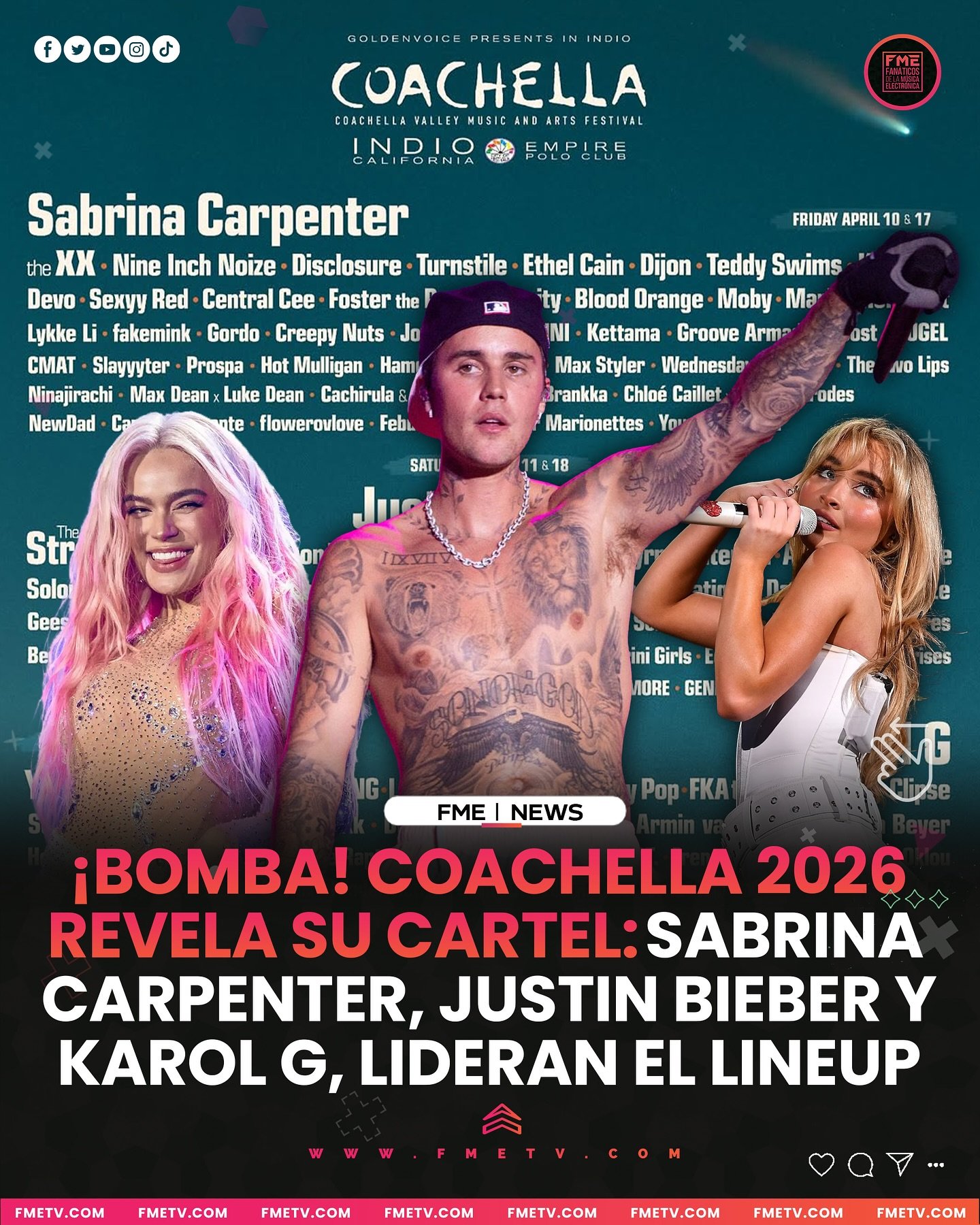 Este año, los headliners son Sabrina Carpenter, Justin Bieber y Karol G, marcando un momento histórico: será la primera vez que cada uno encabece el festival.