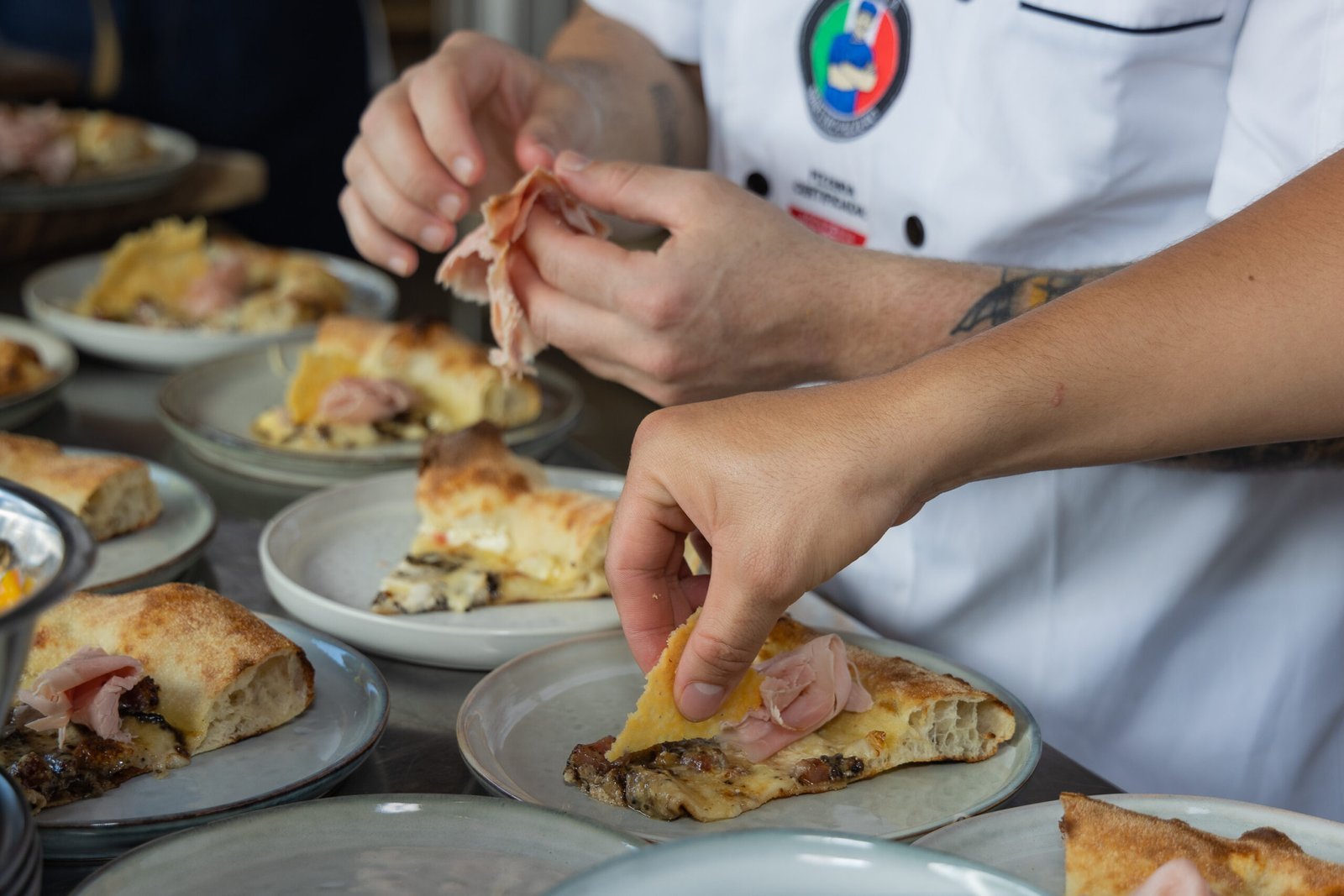 La competencia es particularmente exigente porque el 15% de la nota evalúa la técnica en el horno —limpieza, manejo, orden— y el 85% restante se califica en mesas de jueces que no conocen la identidad del pizzaiolo.