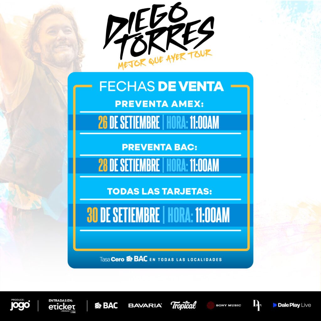San José, Costa Rica. — El reconocido cantautor argentino Diego Torres volverá a presentarse en el país el próximo 13 de noviembre de 2025 en el Centro de Eventos Pedregal, como parte de su exitosa gira mundial “Mejor Que Ayer Tour”. Este concierto promete ser una velada inolvidable, donde los asistentes disfrutarán de sus grandes clásicos junto con los temas de su más reciente producción.