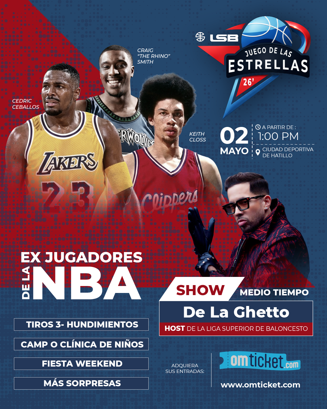 La LSB confirma una constelación de leyendas internacionales que engalanarán la duela. Entre los invitados de honor se encuentran los ex-NBA Cedric Ceballos (All-Star y campeón del Slam Dunk Contest), Craig Smith (reconocido por su potencia en equipos como los Minnesota Timberwolves, Portland Trial Blazer y LA Clippers) y el carismático Keith Closs quien jugó en los Ángeles Clippers y Harlem Globetrotters. Estas figuras no solo participarán en el Juego de Celebridades, sino que liderarán clínicas de bien social y actividades de fomento a la lectura para niños en la zona de Hatillo durante la mañana del evento.